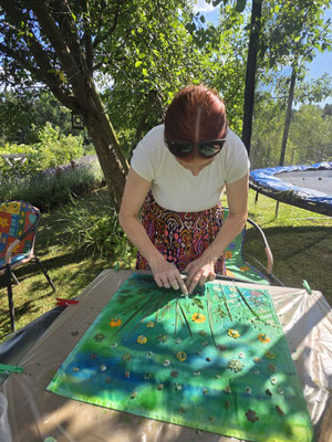 Kosten für das Seminar inklusive genähtem Baumwoll-Leinen Tuch und Farben: EUR 69,00